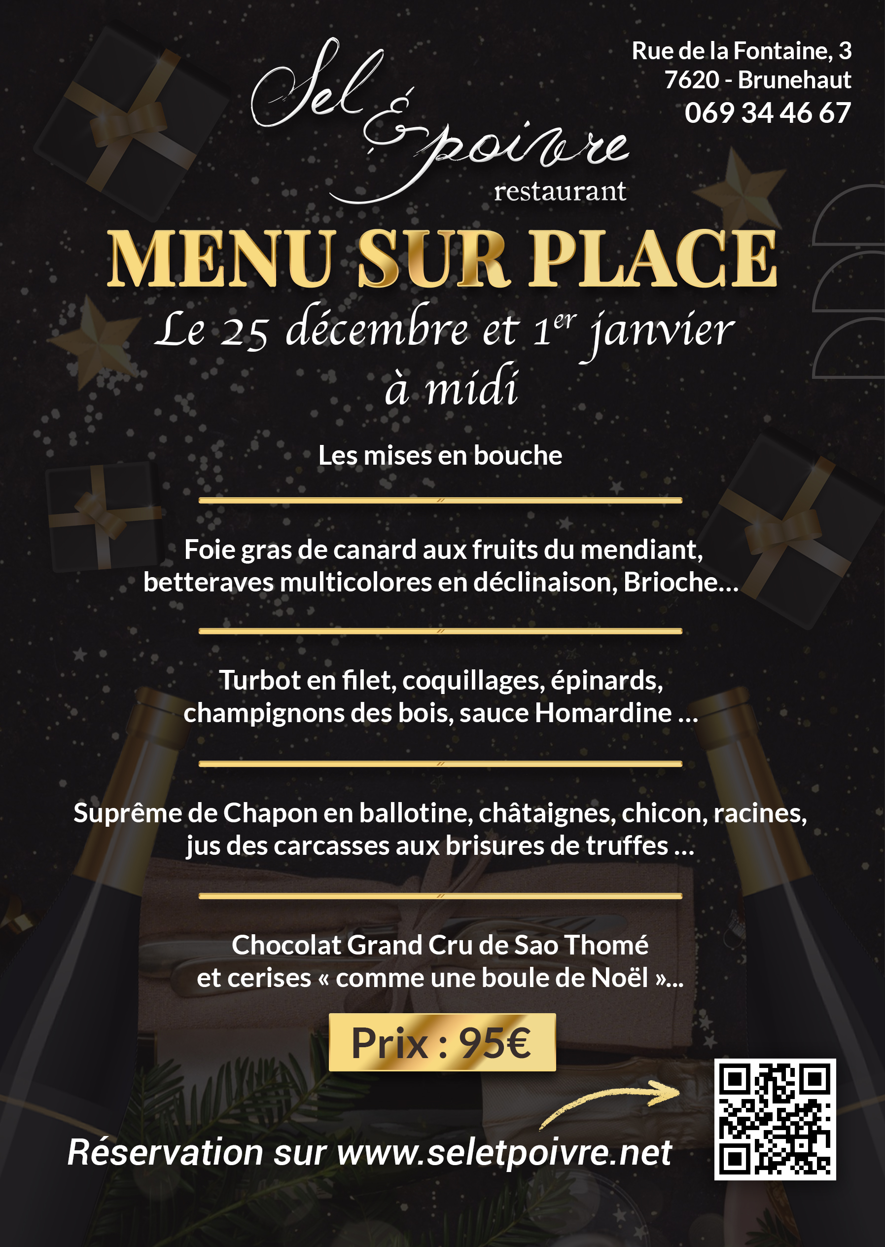Menu du 25 décembre et du 1er janvier à midi au restaurant.